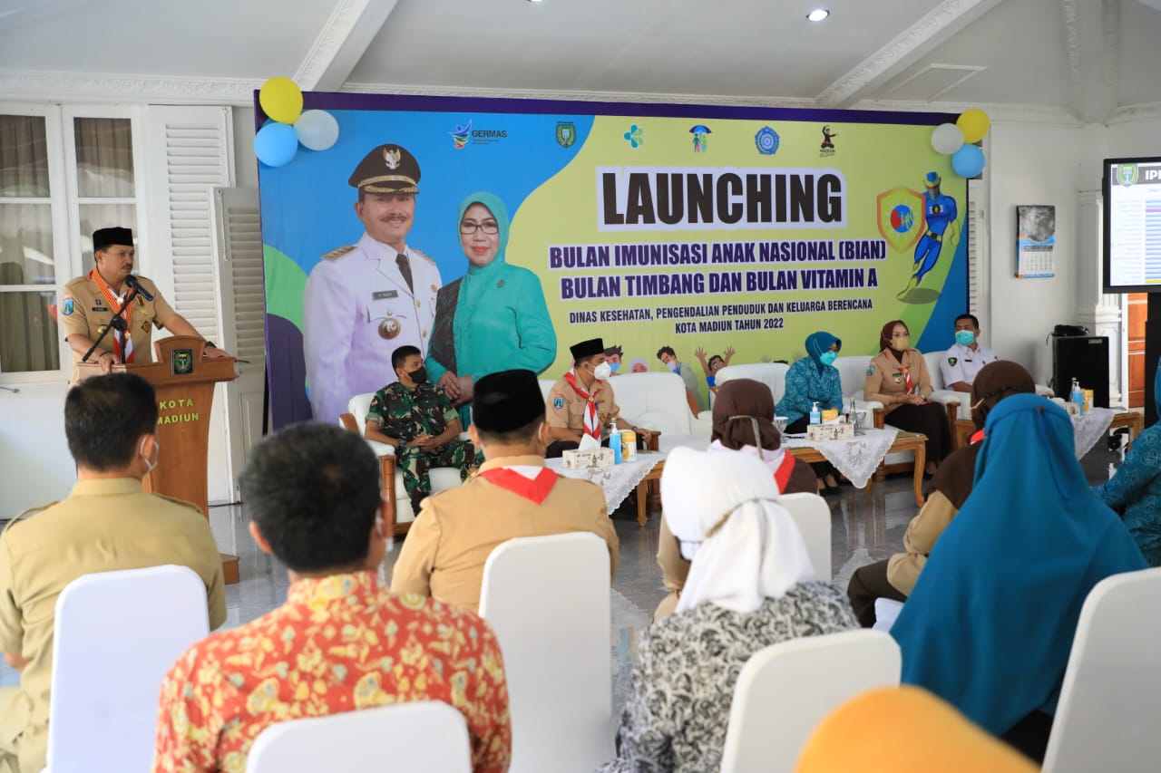 MADIUN - Wali Kota Madiun Maidi merilis Bulan Imunisasi Anak Nasional (BIAN) di Kota Madiun. Prosesi pembukaan BIAN berlangsung di Rumah Dinas Wali Kota, Jalan Pahlawan, Senin (15/8).