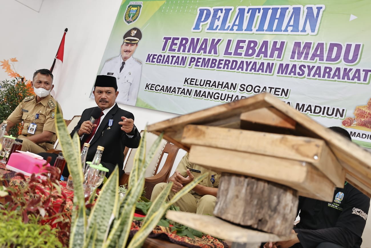 MADIUN – Pelatihan budidaya lebah madu semakin diperluas. Satu persatu kelurahan mendapat pelatihan budidaya secara bergantian. Setelah minggu kemarin berlangsung di Kelurahan Pangongangan, pelatihan kini sampai di Kelurahan Sogaten, Selasa (16/8). Pelatihan semakin seru dengan dibuka langsung Wali Kota Madiun, Maidi.