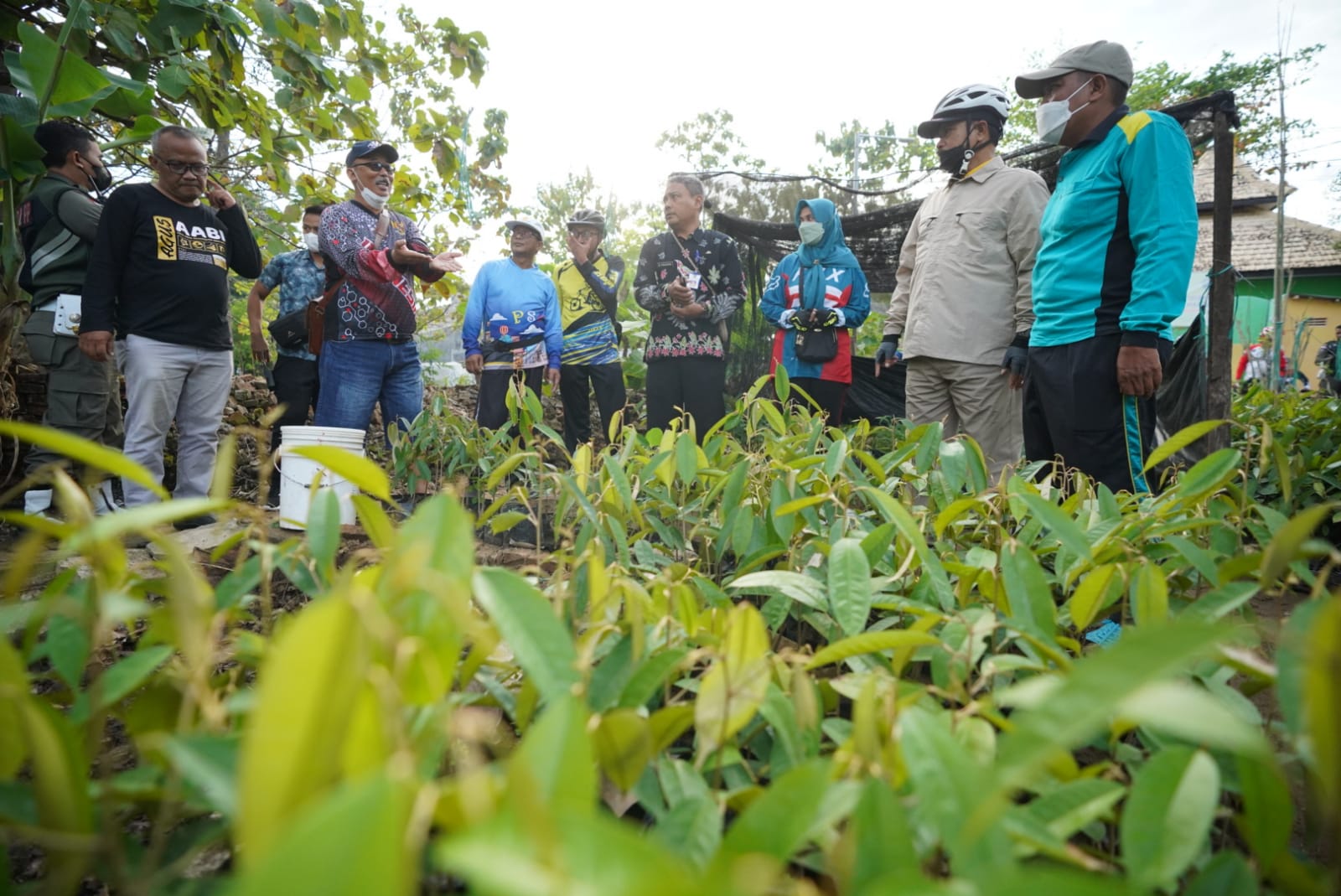 Dalam kesempatan itu, mantan Sekda Kota Madiun itu mengunjungi sejumlah lokasi. Salah satunya, pekarangan terbuka di Jalan Margo Bawero Barat. Di daerah tersebut, warga memanfaatkan sebagian lahan sebagai tempat pembibitan durian.