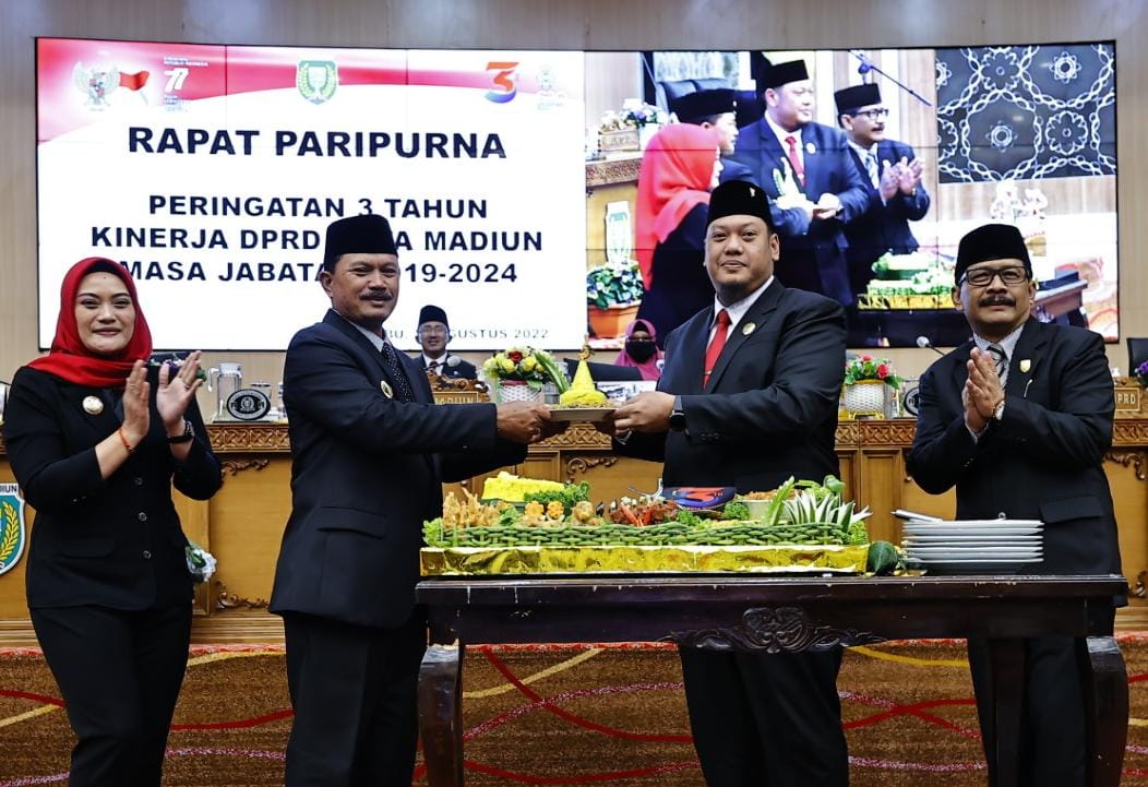 MADIUN – Tepat pada 24 Agustus 2022, DPRD Kota Madiun masa jabatan 2019-2024 memasuki 3 tahun masa kerja. Untuk memperingati hal tersebut, dewan bersama Pemkot Madiun menggelar rapat paripurna pembacaan 3 tahun kinerja DPRD Kota Madiun, Rabu (24/8).