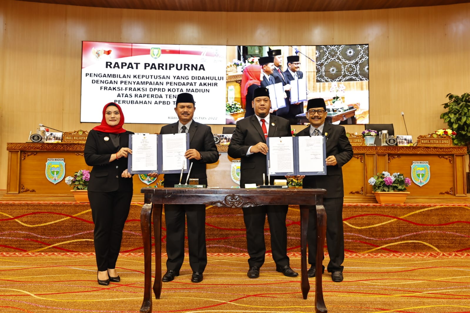 MADIUN – Rancangan Peraturan Daerah Kota Madiun tentang APBD Perubahan (P-APBD) tahun anggaran 2022 telah mendapatkan persetujuan dari seluruh anggota DPRD Kota Madiun. Keputusan ini diambil dalam rapat paripurna di Gedung DPRD Kota Madiun, Rabu (24/8).