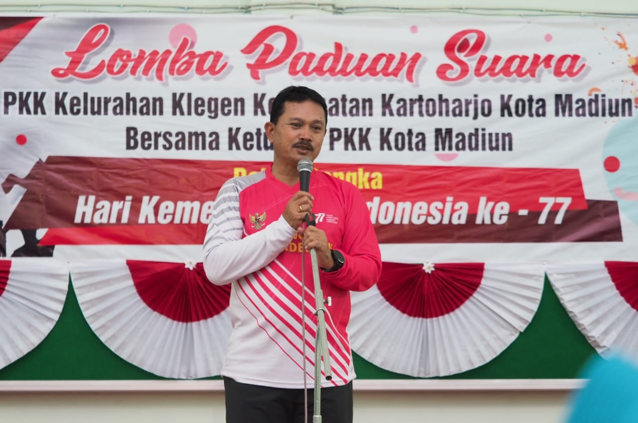 MADIUN - Kegiatan Wali Kota Madiun Maidi pada Minggu (28/8) terus berlanjut. Salah satunya, menghadiri Lomba Paduan Suara PKK Kelurahan Klegen, Kecamatan Kartoharjo di kantor kelurahan setempat.