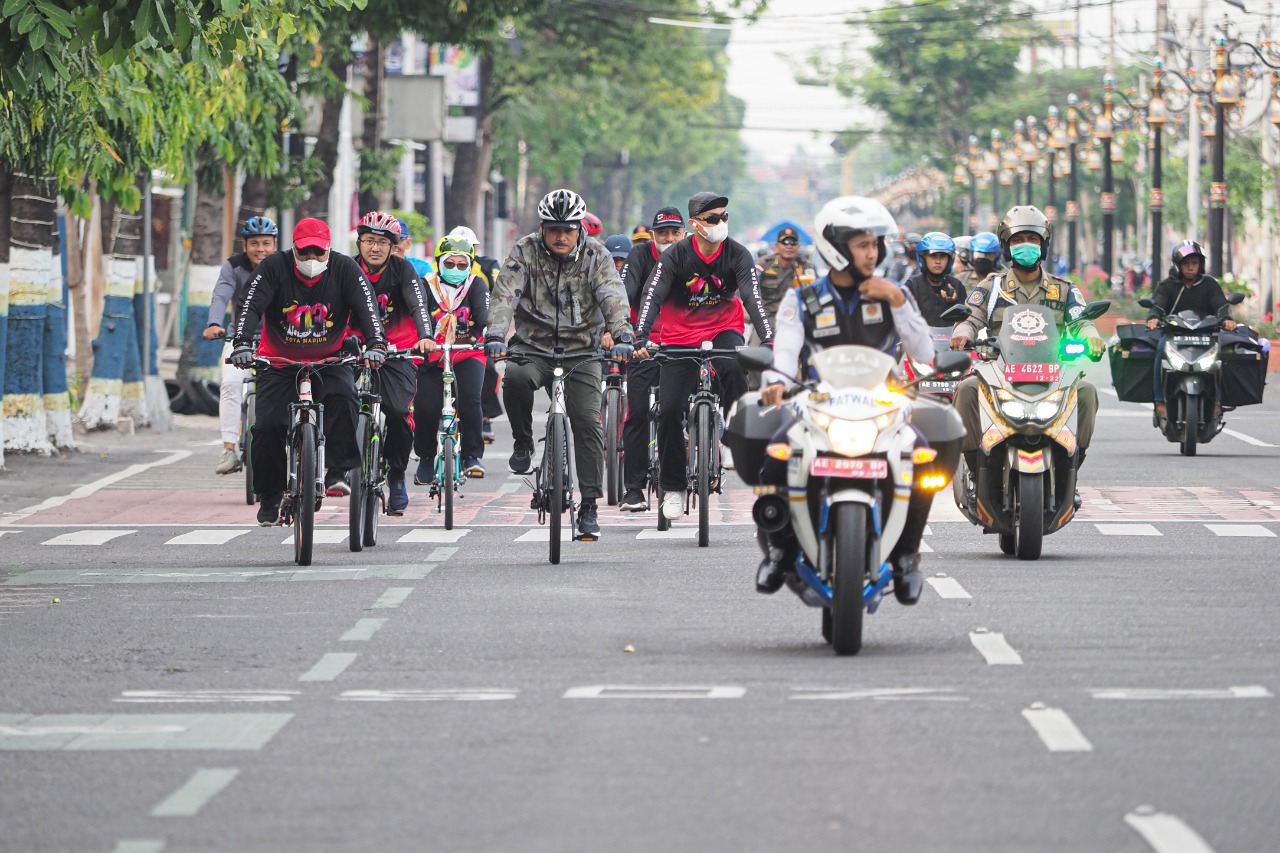 MADIUN - Kegiatan gowes pagi Wali Kota Madiun Maidi terus berlanjut. Minggu (4/9), orang nomor satu di Kota Pendekar itu mengajak OPD terkait untuk keliling kota dengan bersepeda.