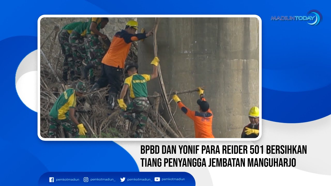 BPBD DAN YONIF PARA REIDER 501 BERSIHKAN TIANG PENYANGGA JEMBATAN MANGUHARJO