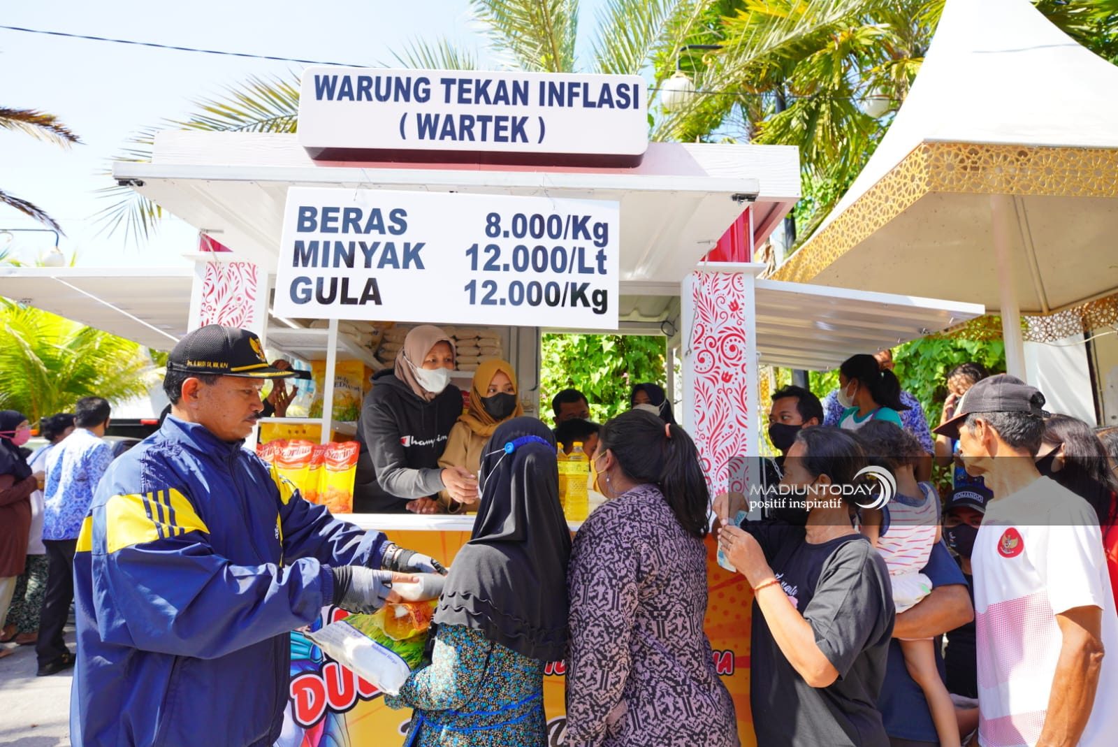 Nah, disela waktu kegiatan itu saya sempatkan berbincang ke sejumlah pedagang di gerai Plaza Lawu Madiun. Khususnya yang di depan. Ada banyak pedagang di sana. Saya ingin memastikan tidak ada kenaikan harga dari produk yang dijual. Benar saja, tidak ada kenaikan harga. Harga jualnya masih tetap. Beberapa waktu belakangan memang kita gencar menekan harga bahan pokok yang beredar di masyarakat. Mulai beras, minyak, telur, gula, sampai sayuran seperti bawang merah, bawang putih, dan cabai. Saat harga barang-barang itu stabil, harga jual produk para pedagang juga stabil. Saat harga jual stabil, daya beli masyarakat juga tetap terjaga.