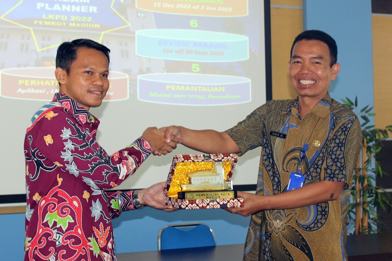 MADIUN – Kinerja apik Pemerintah Kota Madiun dalam menyuguhkan pelaporan keuangan untuk tahun anggaran 2021 kepada Badan Pemeriksa Keuangan (BPK) mengundang sejumlah daerah lain untuk datang belajar. Setidaknya, sudah ada delapan daerah yang datang berkunjung ke kantor Badan Keuangan dan Aset Daerah (BKAD) Kota Madiun selama 2022 ini. Terbaru ada perwakilan dari Pemerintah Kota Tarakan Provinsi Kalimantan Utara dan Pemerintah Provinsi Kalimantan Tengah yang datang, Kamis (29/9).