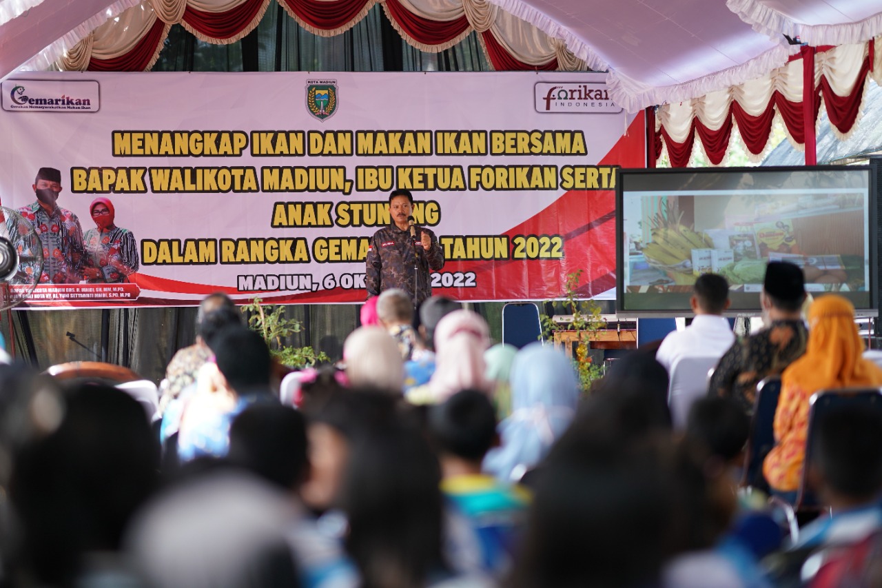 Hal itu seperti yang dikatakan Wali Kota Maidi. Orang nomor satu di Kota Madiun itu mengatakan bahwa pemerintah hadir dalam menihilkan stunting. Salah satu caranya dengan mengkampanyekan makan ikan.