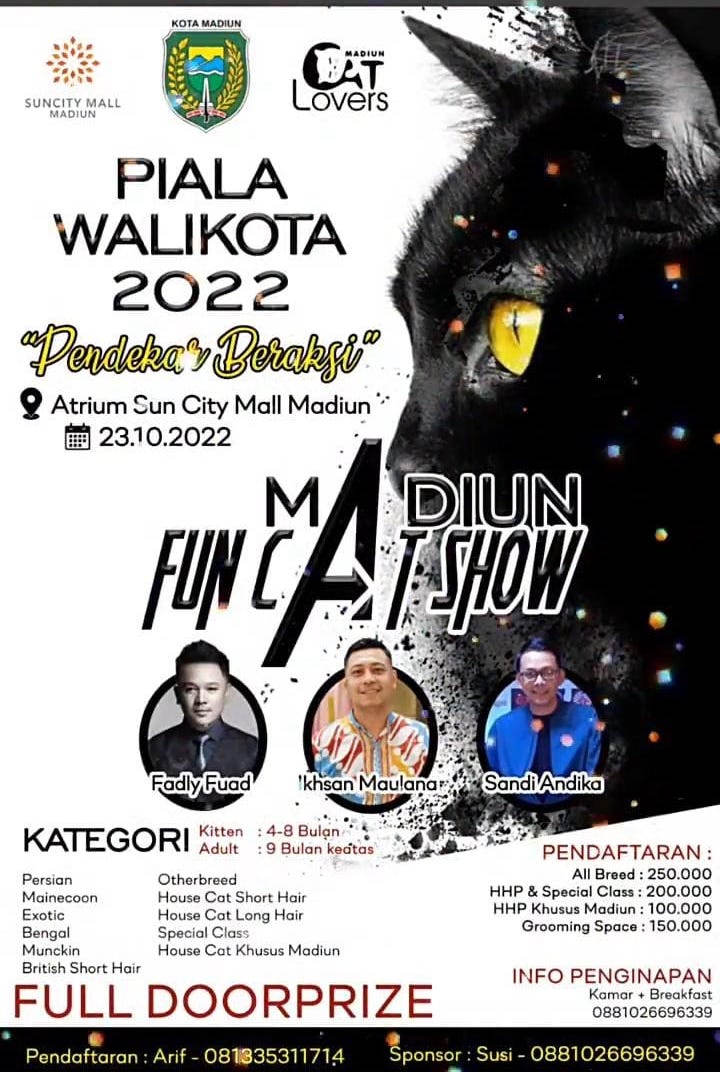 MADIUN - Para pecinta kucing harap bersiap-siap. 23 Oktober mendatang Madiun Cat Lovers akan menggelar kontes Madiun Fun Cat Show Wali Kota Cup 2022.