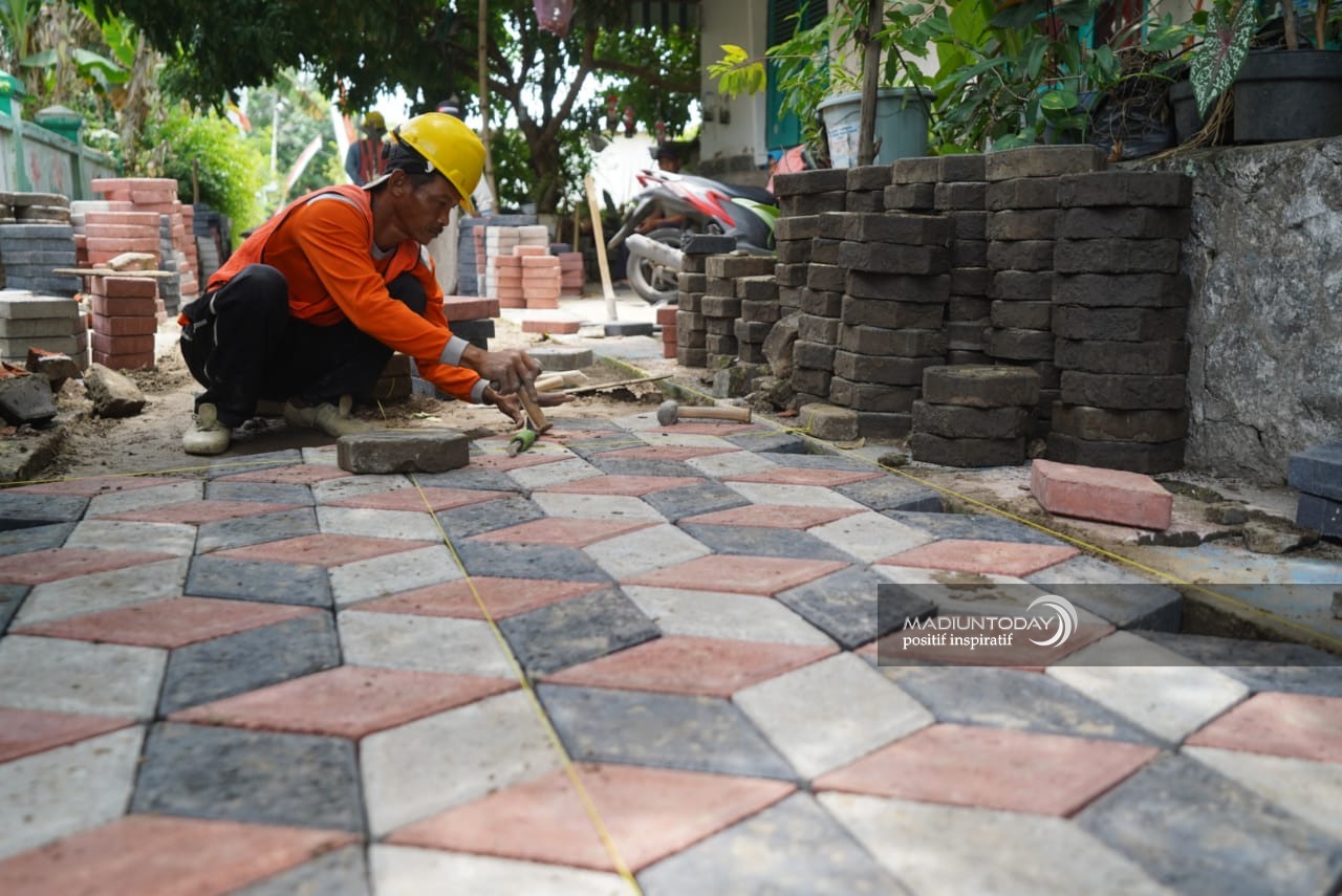 MADIUN – Pavingisasi 44 ribu meter di Kota Madiun terus berjalan. Sejumlah pekerjaan juga sudah dimulai di Kelurahan Pangongangan. Setidaknya, ada enam titik pavingisasi di kelurahan tersebut. Total panjangnya mencapai 1.394 meter persegi. Biarpun belum semua berjalan, setidaknya dua dari enam titik tersebut pekerjaannya sudah mencapai 30 persen.