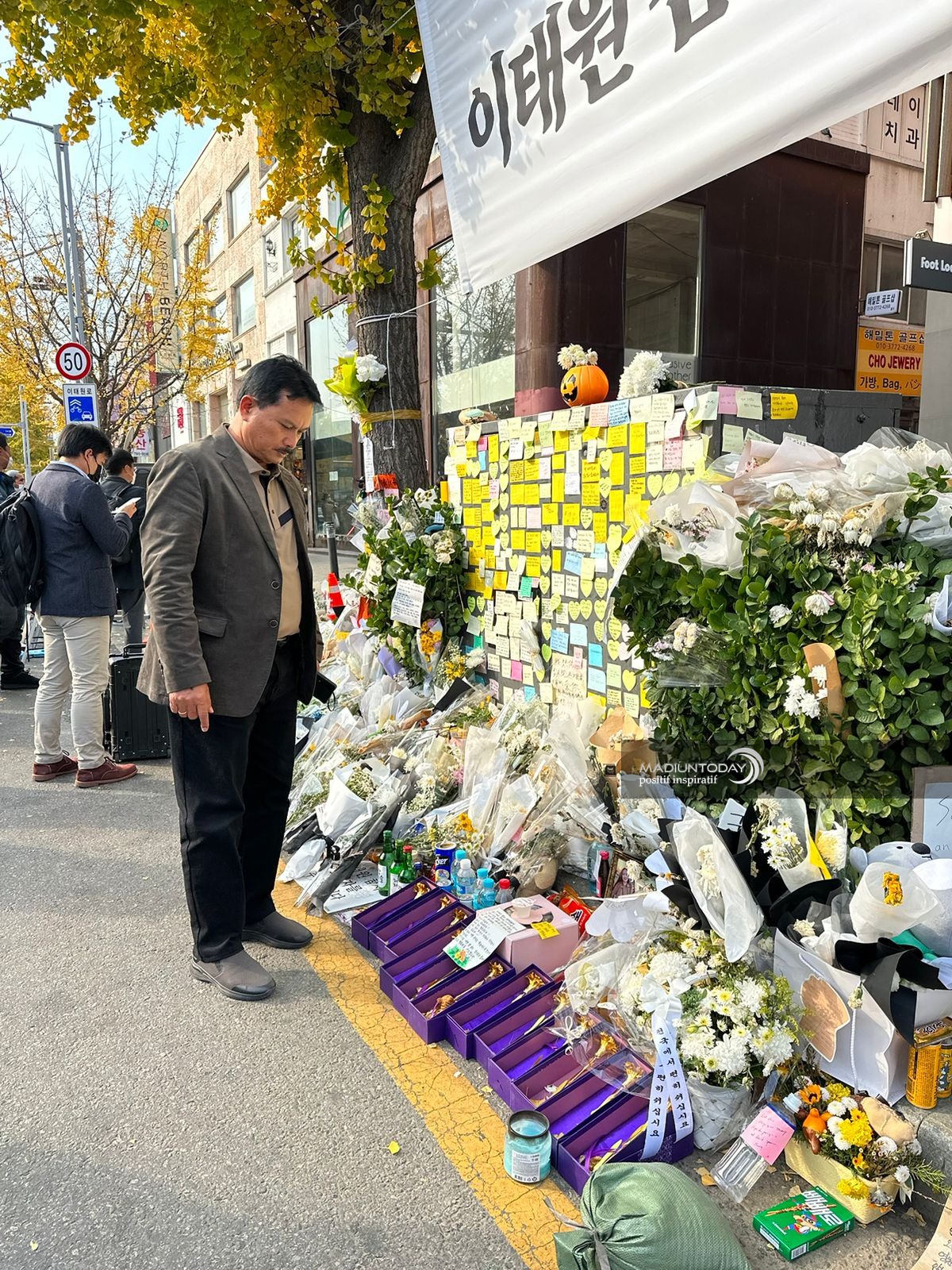 SEOUL, KORSEL – Tragedi Itaewon 29 Oktober lalu masih menyisakan pilu bagi sebagian masyarakat. Tak heran, lokasi kejadian mengerikan saat perayaan Festival Halloween itu masih ramai dikunjungi untuk berbela sungkawa. Hal serupa juga dilakukan Wali Kota Madiun, Maidi yang tengah berada di negeri gingseng tersebut.