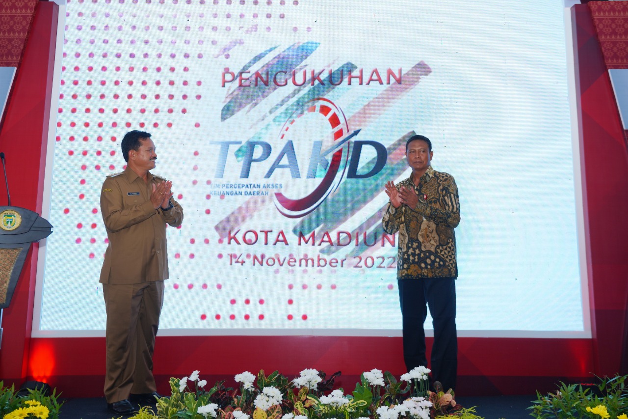 MADIUN – Kota Madiun kini punya Tim Percepatan Akses Keuangan Daerah (TPAKD). Tim yang terdiri dari sejumlah kepala Organisasi Perangkat Daerah (OPD), perbankan, dan nonperbankan itu dikukuhkan Wali Kota Madiun, Maidi di Rumah Dinas (Rumdin) Madiun, Senin (14/11). Setidaknya tim beranggotakan 34 orang yang diketuai Asisten 1 Pemkot Madiun, Agung Sulistya Wardani.