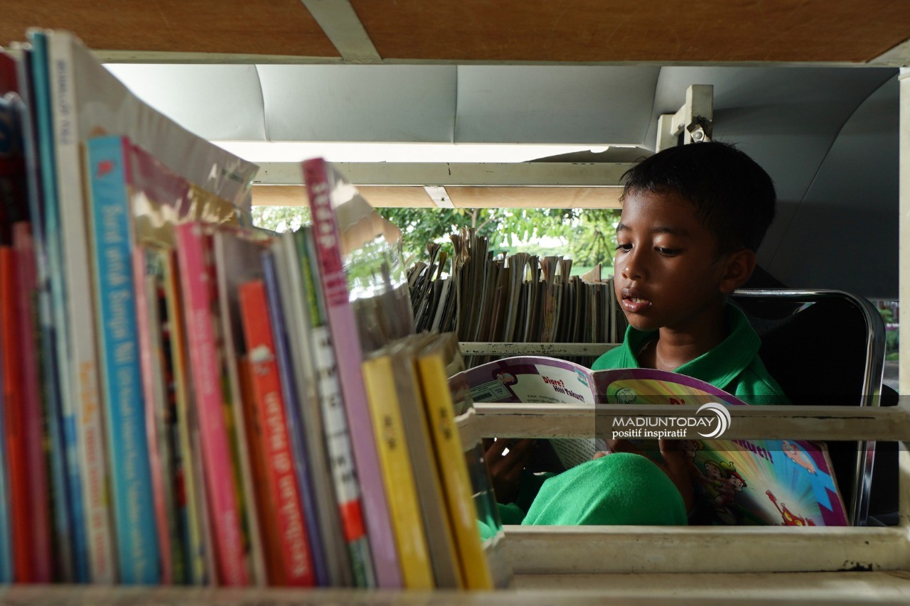 “Kita keliling tiap Selasa dan Kamis. Mulai berangkat 07.30. Pertama kita akan berhenti di Lapangan Gulun, lalu keliling di sekolah dasar yang sudah terjadwal,” terang Pustakawan Pelaksana Dinas Perpustakaan dan Kearsipan Kota Madiun, Meylinda Agustin.