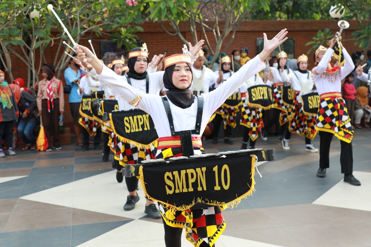 Dalam kegiatan tersebut, SMPN 10 tampil memukau. Lantunan nada dari tiap alat marching, terdengar seirama sekaligus menghentakan semangat para penontonnya.