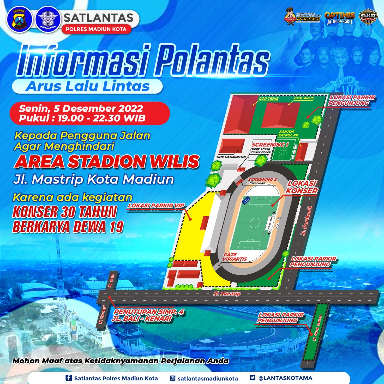 Ada Konser Dewa 19 di Stadion Wilis, Satlantas Polres Madiun Kota Terapkan Rekayasa Lalu Lintas