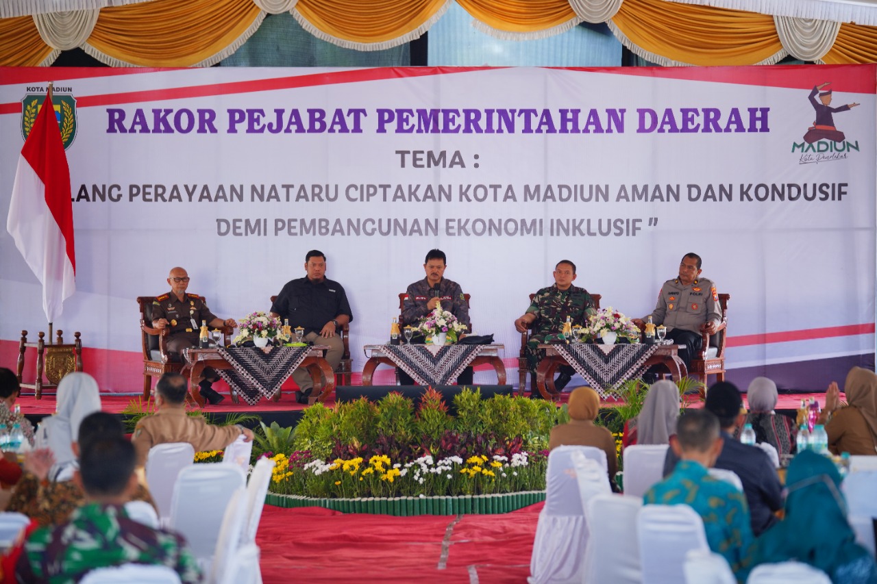 Rakor tersebut mengusung tema jelang perayaan Nataru ciptakan Kota Madiun aman dan konfusif demi pembangunan inklusif. Berbagai pembahasan terkait kesiapan seluruh pihak jelang Nataru dibahas. Mulai dari menciptakan trantibum hingga menjaga kestabilan harga.