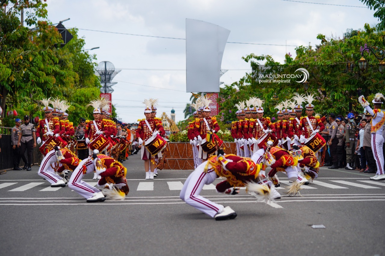 MADIUN – Aksi Drumcorps Pelopor Cenderawasih dalam Parade Nusantara sukses menghentak Kota Madiun, Sabtu (10/12). Bagaimana tidak, kehadiran Marching Band Akademi Polisi (Akpol) itu mampu menyedot animo masyarakat Kota Pendekar dan sekitar. Tak heran, Wali Kota Madiun Maidi memberikan apresiasinya.