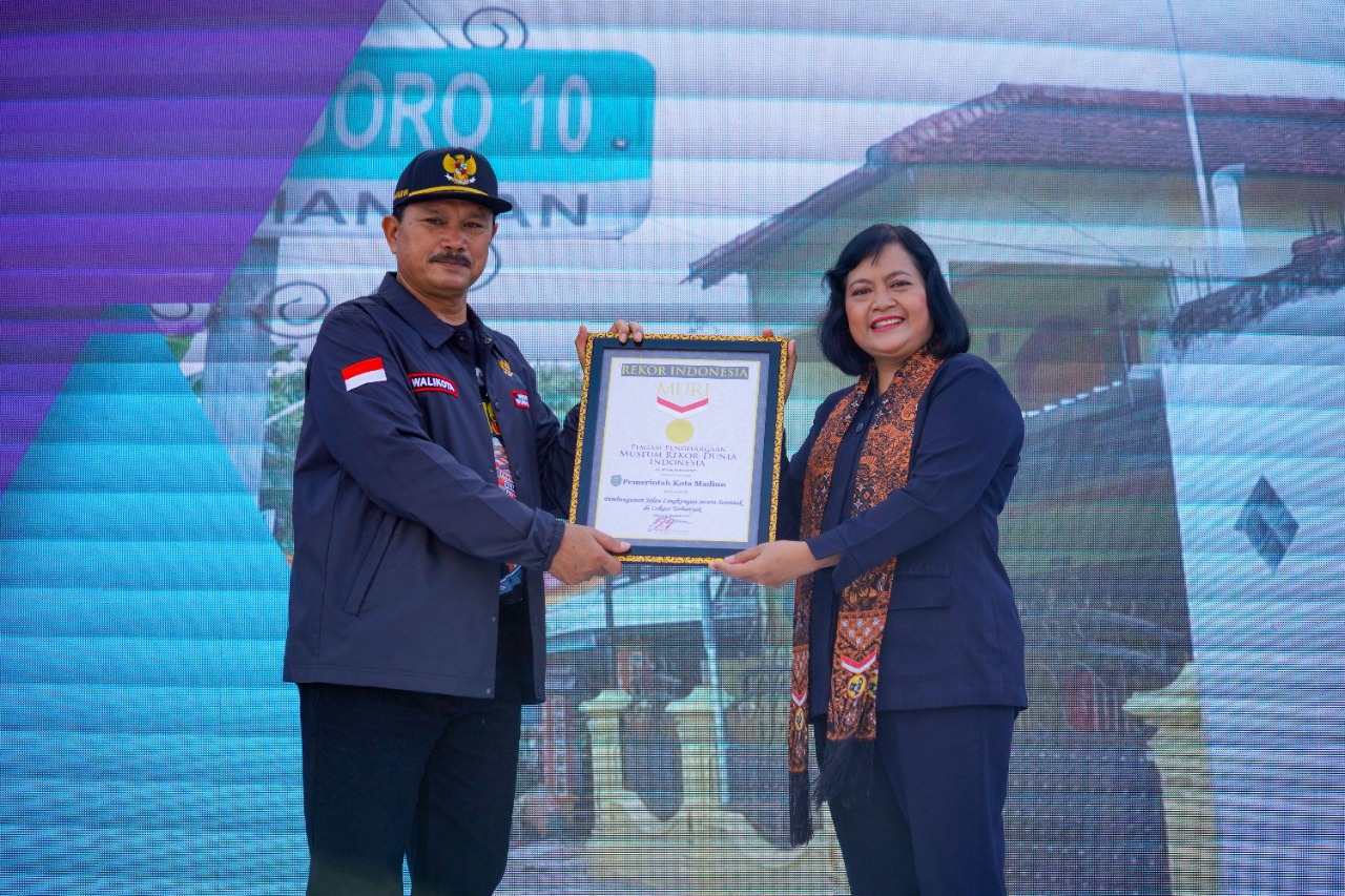 MADIUN - Kota Madiun kembali meraih penghargaan dari Museum Rekor Indonesia. Penghargaan tersebut diperoleh atas program pembangunan jalan atau pavingisasi secara serentak di lokasi terbanyak.