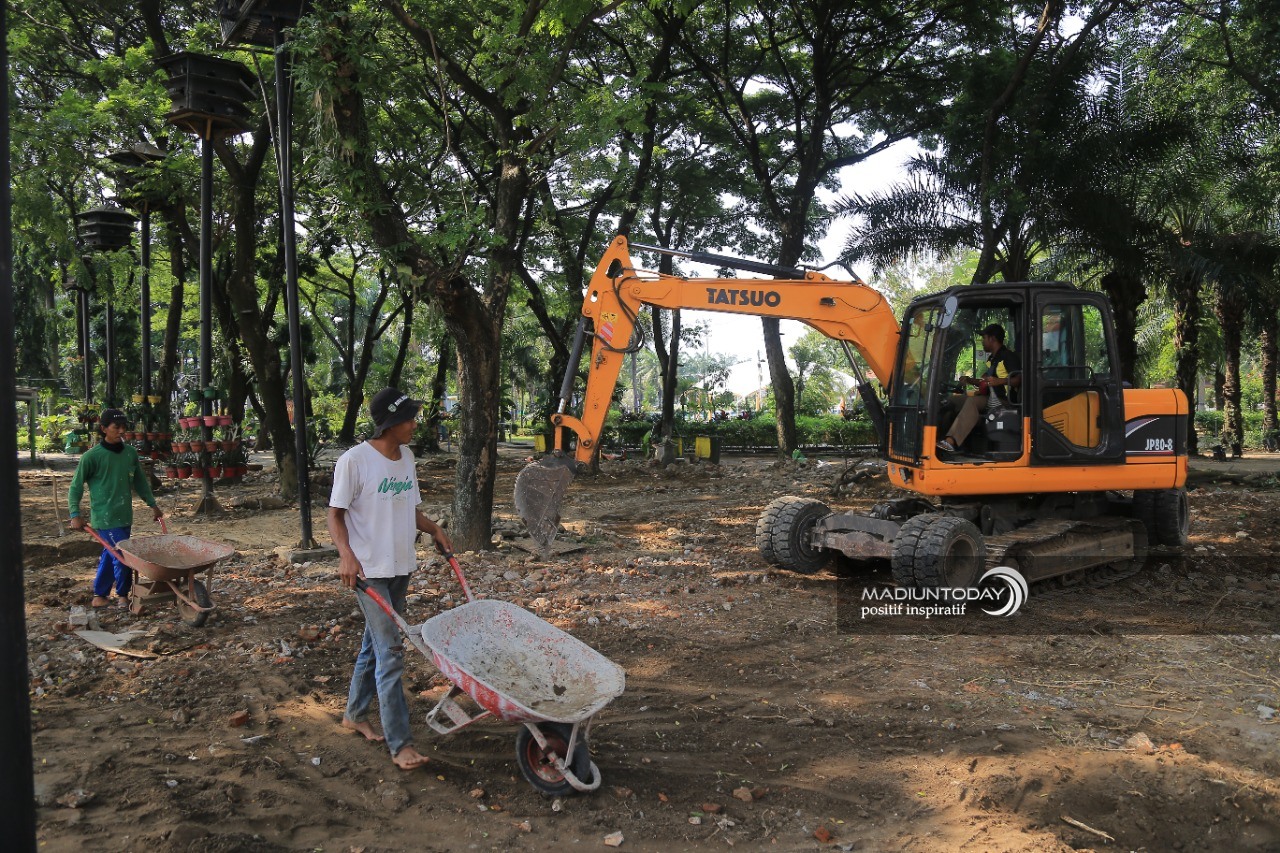 Wali kota menyebut paving yang saat ini sudah dibongkar untuk kemudian dilakukan penataan ulang. Pagarnya juga dirobohkan untuk jalan masuk kendaraan. Selain itu, juga dilakukan perataan tanah. Kondisi awal memang belum rata. Perapian pohon juga dilakukan. Karenanya, pekerjaan melibatkan lintas organisasi perangkat daerah (OPD). Mulai Dinas Pekerjaan Umum dan Penataan Ruang (PUPR) dan Dinas Perumahan Rakyat dan Kawasan Permukiman (Perkim) Kota Madiun.