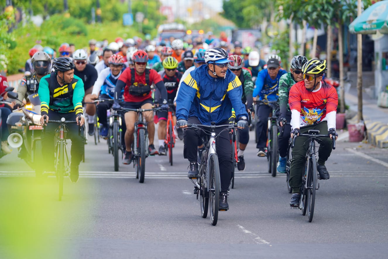 MADIUN – Sinergitas Forkopimda wajib terus terjalin. Peningkatan sinergitas salah satunya bisa melalui kegiatan olahraga. Seperti gowes bersama yang dilakukan Wali Kota Maidi bersama jajaran Korem 081 Dhirotsaha Jaya, jajaran Kodim 0803, dan jajaran Polres Madiun Kota, Jumat (6/1). Tak hanya jalin sinergitas, kegiatan olahraga bersama tersebut juga sarana berkoordinasi dari atas sepeda.