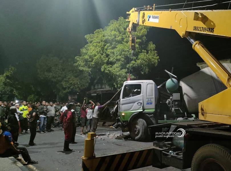 Seperti diketahui, sebuah truk molen berjalan dari arah Maospati menuju Kota Madiun menabrak median jalan. Parahnya dari arah berlawanan, pengendara motor ikut tersambar truk yang terus melaju hingga menabrak rumah warga.