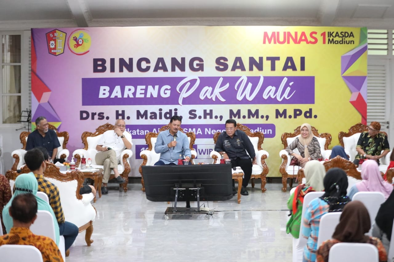 MADIUN - Ikatan Alumni SMAN 2 Madiun (Ikasda) akan menggelar musyawarah nasional untuk pertama kalinya di Kota Madiun. Sebelum itu, para alumni menggelar bincang santai bersama Wali Kota Madiun Maidi.