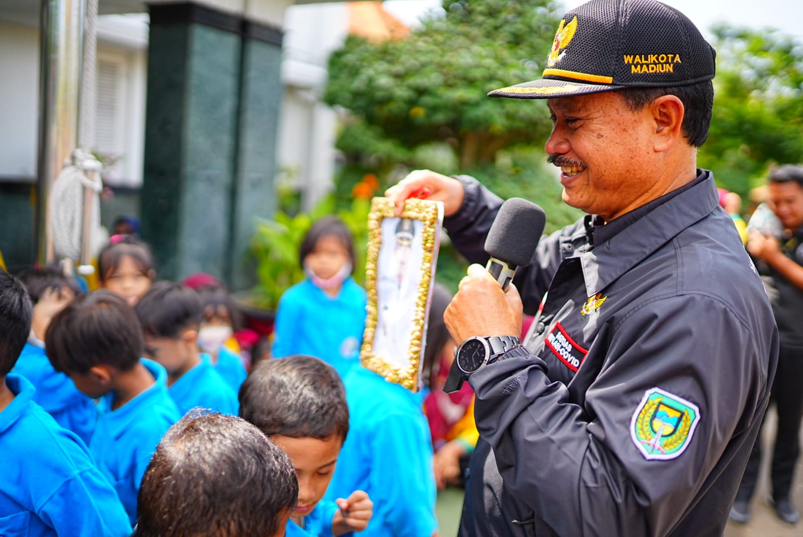 Seperti yang terlihat pada Kamis (19/1). Wali Kota Maidi menerima kunjungan dari para siswa CKS. Kesempatan itu digunakan orang nomor satu di Kota Pendekar itu untuk lebih akrab dengan anak-anak.