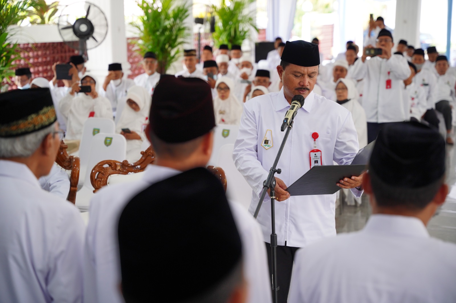 MADIUN - Wali Kota Maidi mengukuhkan pengurus Ikatan Persaudaraan Haji Indonesia (IPHI) Kota Madiun masa kepengurusan 2023-2028, Rabu (15/2).
