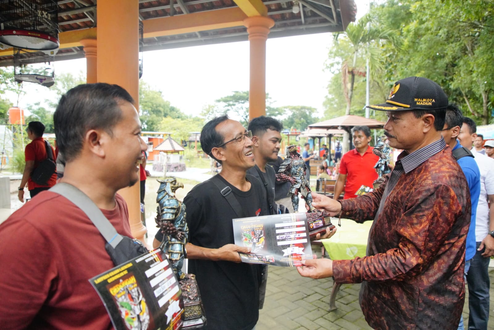 MADIUN – Keberadaan lapak UMKM Kelurahan memang bukan sekedar tempat transaksi jual-beli. Namun, juga bisa dimanfaatkan untuk berbagai kegiatan. Salah satunya, lomba burung berkicau. Hal itu seperti yang terlihat di Lapak Kampung Eduwisata Gedongan Kelurahan Manguharjo. Wali Kota Maidi pun memberikan apresiasinya.