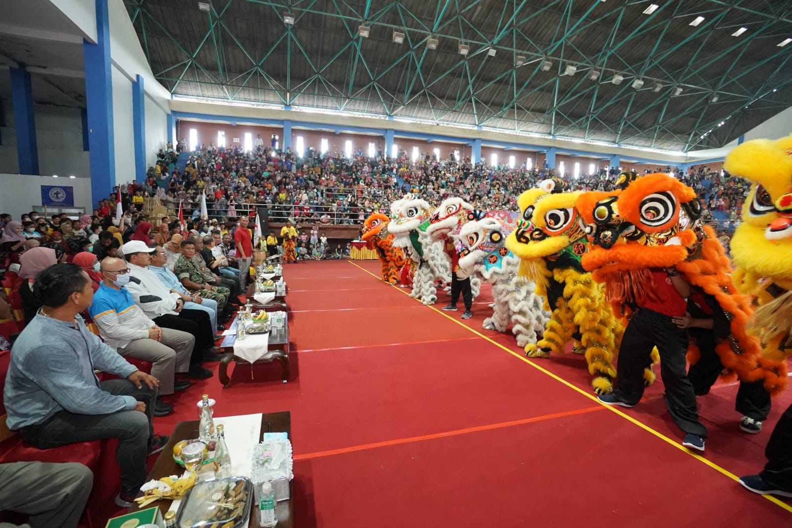 MADIUN - Lenggak-lenggok lincah nan atraktif dari penampilan barongsai berhasil memukau ratusan penonton yang memadati Gor Wilis Kota Madiun. Resmi dimulai Sabtu (18/2), Festival Barongsai Piala Walikota Madiun 2023 itu membawa atmosphere baru untuk di cabang olahraga barongsai.