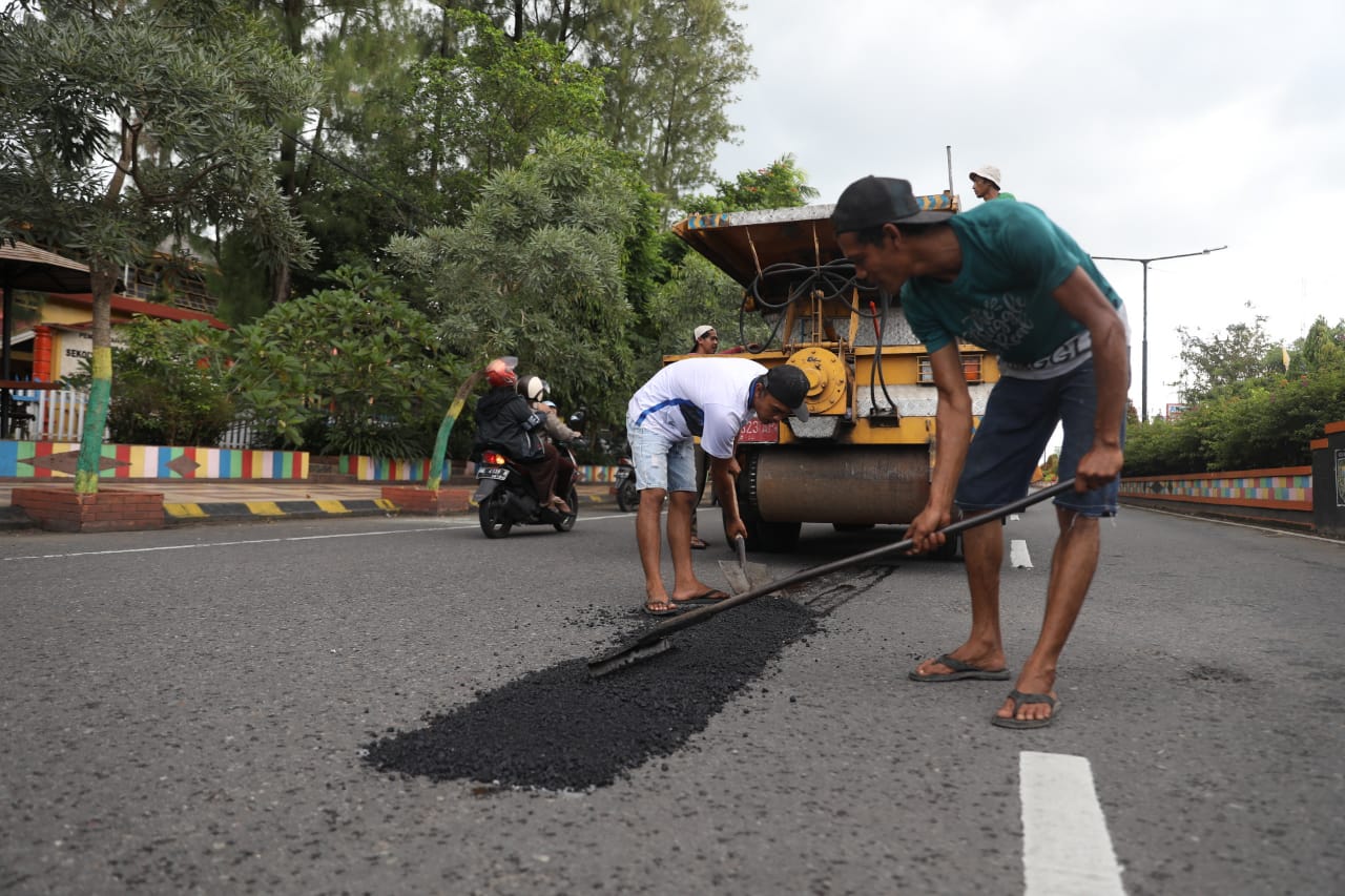 Salah satu pekerjaan yang menjadi fokus perhatian saat ini adalah penambalan aspal jalan. Setidaknya, ada 120 lubang di sepanjang jalan protokol yang telah ditandai dan mulai ditambal saat ini.