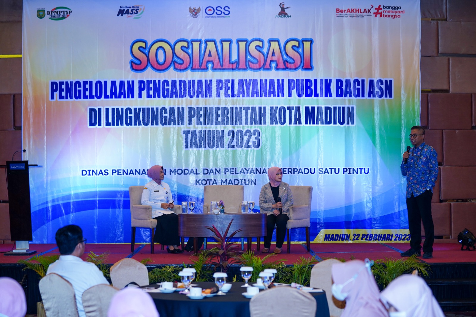 Adapun Sosialisasi Pengelolaan Pengaduan Pelayanan Publik Bagi ASN Di Lingkungan Pemkot Madiun 2023 berlangsung di Bima Ballroom Aston Hotel Madiun, Rabu (22/2). Dalam kegiatan ini juga dihadirkan narasumber ahli yakni Kepala Perwakilan Ombudsman RI Jatim Agus Muttaqin.