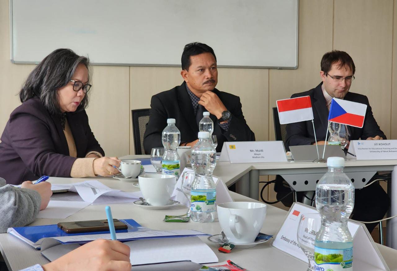 Pertemuan dengan pihak universitas tersebut berlangsung, Senin (6/3) siang waktu setempat. Wali Kota Maidi tidak sendiri. Wali kota didampingi Ketua DPRD Kota Madiun Andi Raya Bagus Miko Saputra, Wakil DPRD Istono dan Armaya. Rombongan diterima Wakil rektor bidang perencanaan Pendidikan dan kemahasiswaan, Assoc. Prof. Dr. Jiri Kohout beserta jajaran. Kedua belah pihak sepakat untuk saling menjajaki potensi pendidikan di masing-masing tempat. Setidaknya terdapat dua hal yang mengemuka. Yakni, terkait potensi program beasiswa untuk berkuliah di sana serta penjajakan kerja sama antara fakultas teknik University of West Bohemia dengan fakultas teknik perguruan tinggi di Kota Madiun. Wali kota memfokuskan kepada dua perguruan tinggi. Yakni, Politeknik Perkerataapian Indonesia (PPI) dan Politeknik Negeri Madiun (PNM).