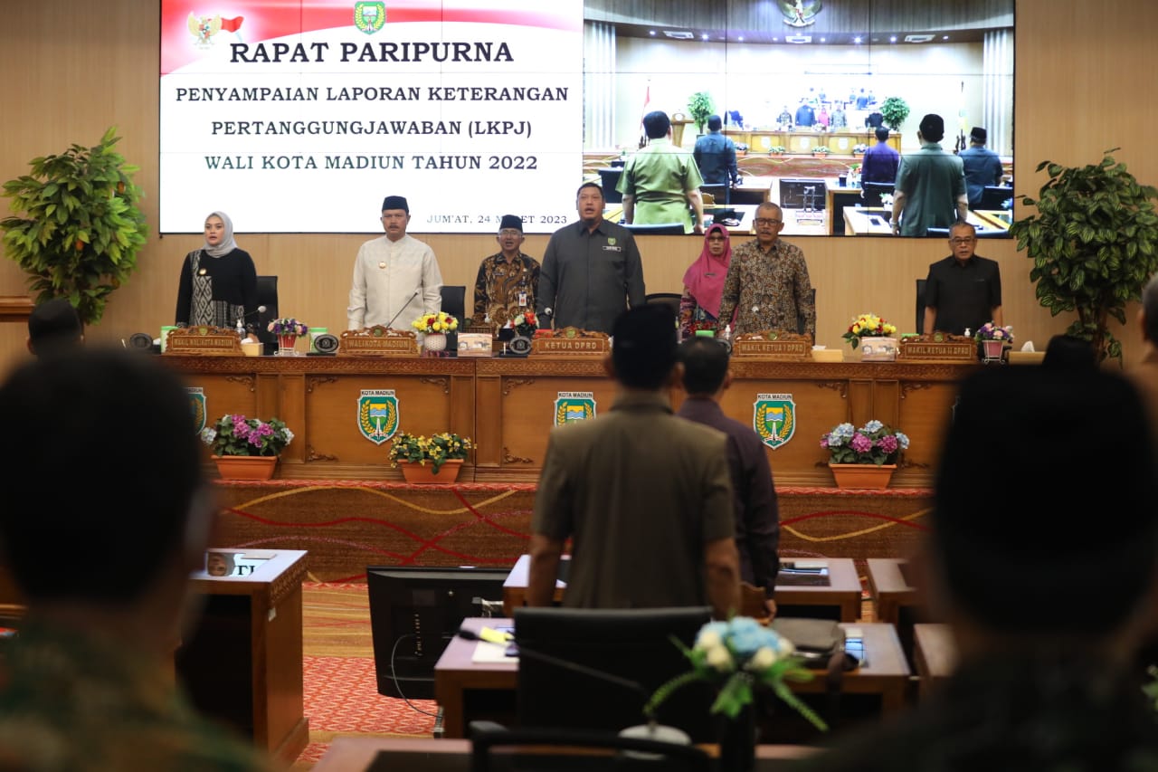 Sidang paripurna dengan agenda Penyampaian Nota Keuangan Wali Kota Madiun atas Raperda Kota Madiun tentang Pertanggungjawaban Pelaksanaan APBD Tahun Anggaran (TA) 2022 itu berlangsung di Gedung DPRD Kota Madiun, Jumat (24/3).