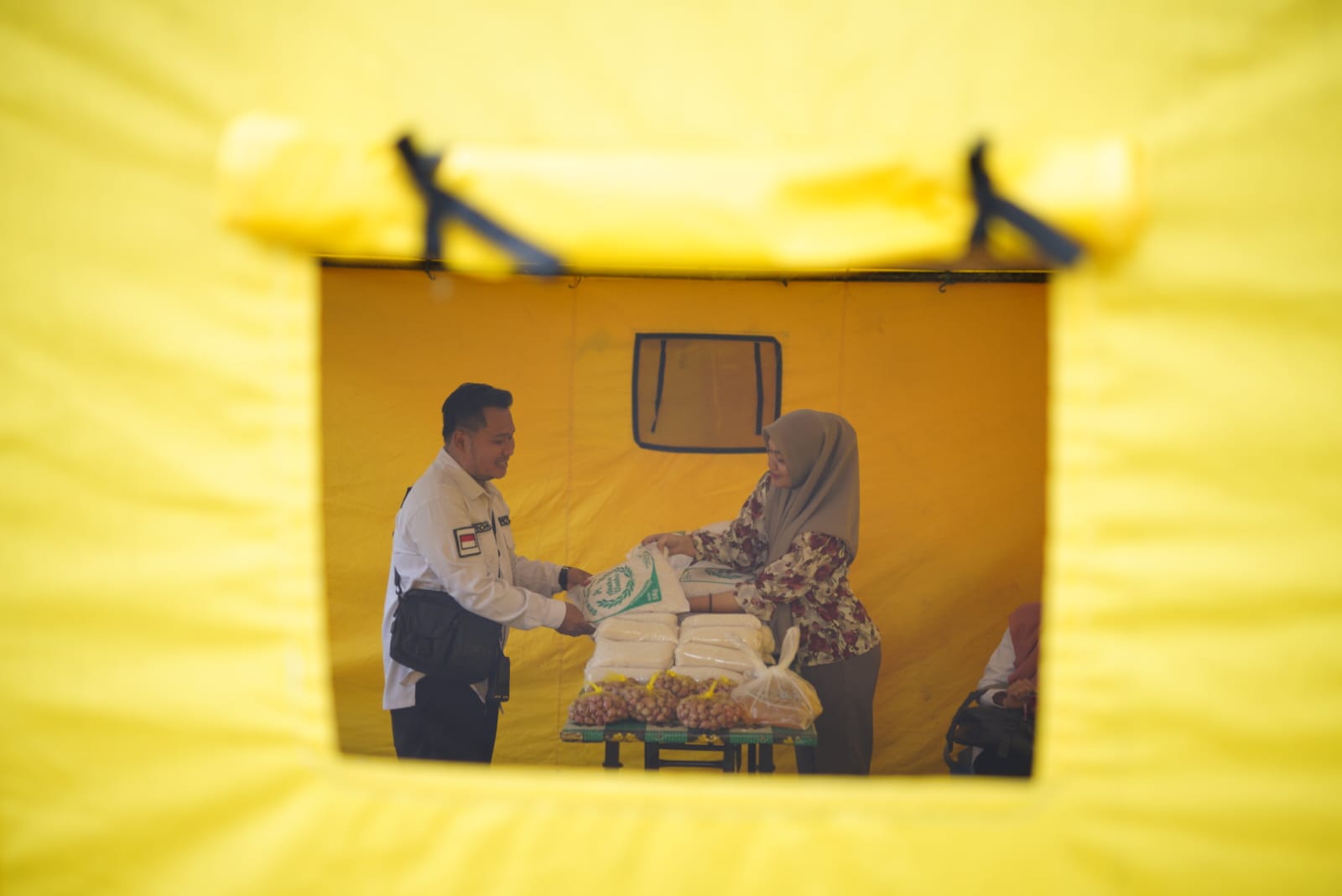 Sejumlah bahan kebutuhan pokok yang disediakan antara lain beras, gula, bawang merah, bawang putih, dan telur ayam. Semuanya dipatok dengan harga di bawah pasaran.