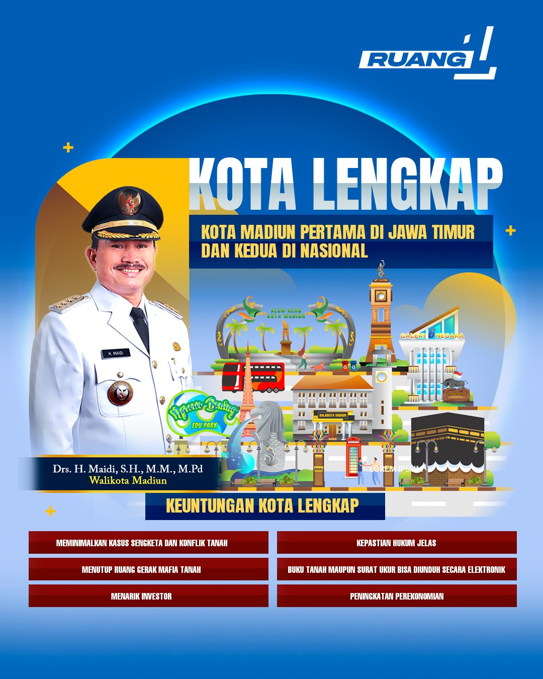 Kota kita sudah berstatus kota lengkap. Deklarasinya dilakukan Menteri Agraria dan Tata Ruang/Badan Pertanahan Nasional ATR/BPN, bapak Hadi Tjahjanto di Asrama Haji Kota Madiun, Selasa (28/3) sore. Lagi-lagi, kota kita yang pertama di Jawa Timur. Juga kedua secara nasional. Kota Denpasar yang katanya lebih dulu. Bayangkan, kita hampir selalu mengukir prestasi di tingkat provinsi maupun nasional. Sebelumnya, kota kita juga mendapat predikat Wajar Tanpa Pengecualian (WTP) pertama di Jawa Timur. Soal WTP pertama di Jawa Timur itu kita sudah cukup sering. Bahkan, pernah yang pertama secara nasional.