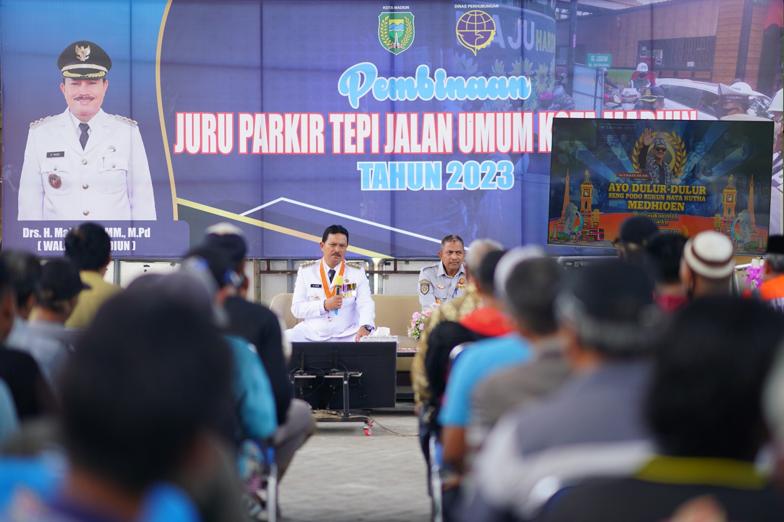 “Jukir adalah penerima tamu saya yang pertama datang, kalau terima tamu baik maka tamu akan berpikiran baik. Begitu sebaliknya. Jaga marwah orang Kota Madiun,” tegasnya.