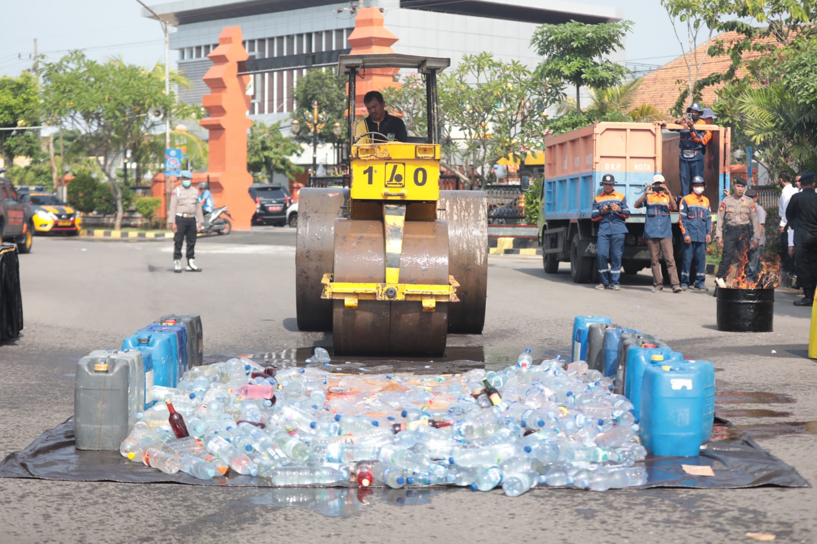 Jaga Kondusifitas Lebaran, Polisi Musnahkan Miras Hingga Knalpot Brong Hasil Sitaan Selama Sepekan