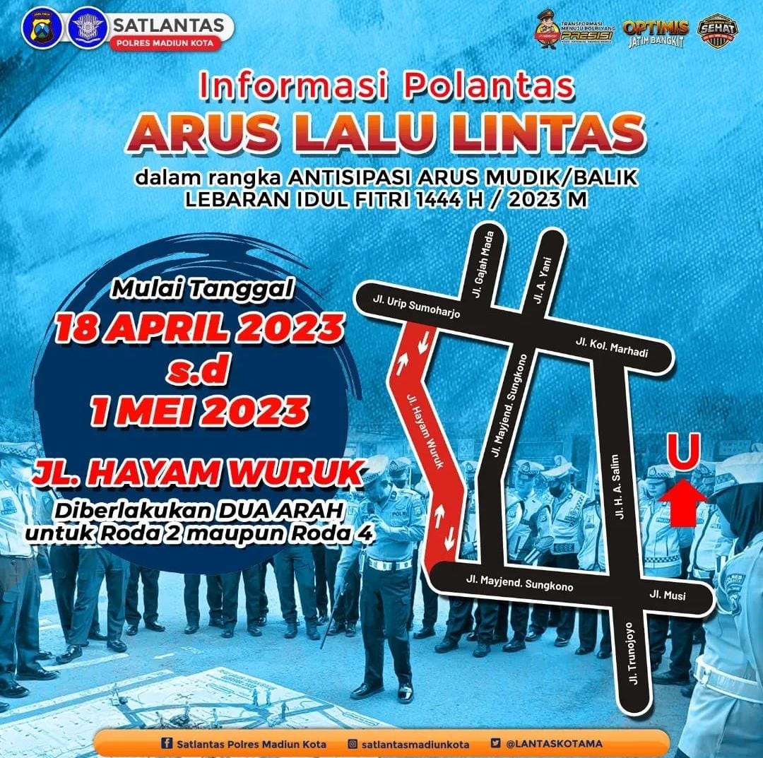 ‘’Kalau di Jalan Hayam Wuruk biasanya kan kendaraan roda empat dilarang melintas dari arah Jalan Urip Sumoharjo. Nah, sementara ini akan kita perbolehkan,’’ kata Kasatlantas Polres Madiun Kota AKP Vista Dwi Pujiningsih, Senin (17/4).