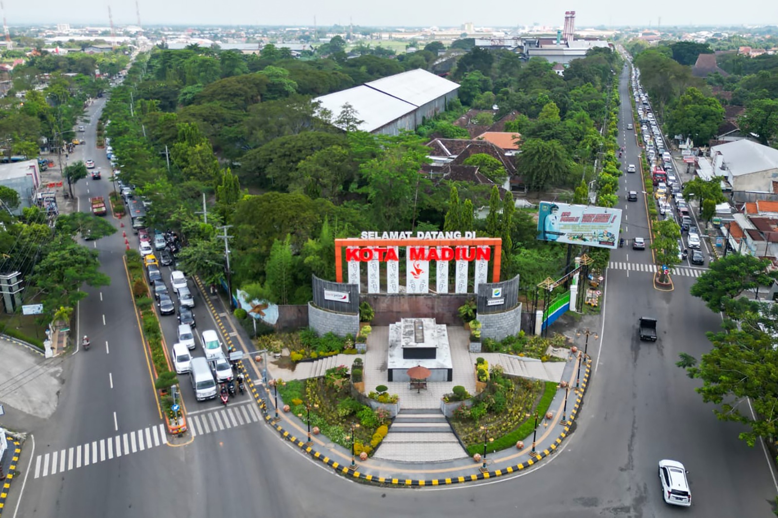 Terpantau kepadatan kendaraan terlihat di sepanjang jalan masuk Kota Madiun di kawasan utara, terutama di Jalan Yos Sudarso.