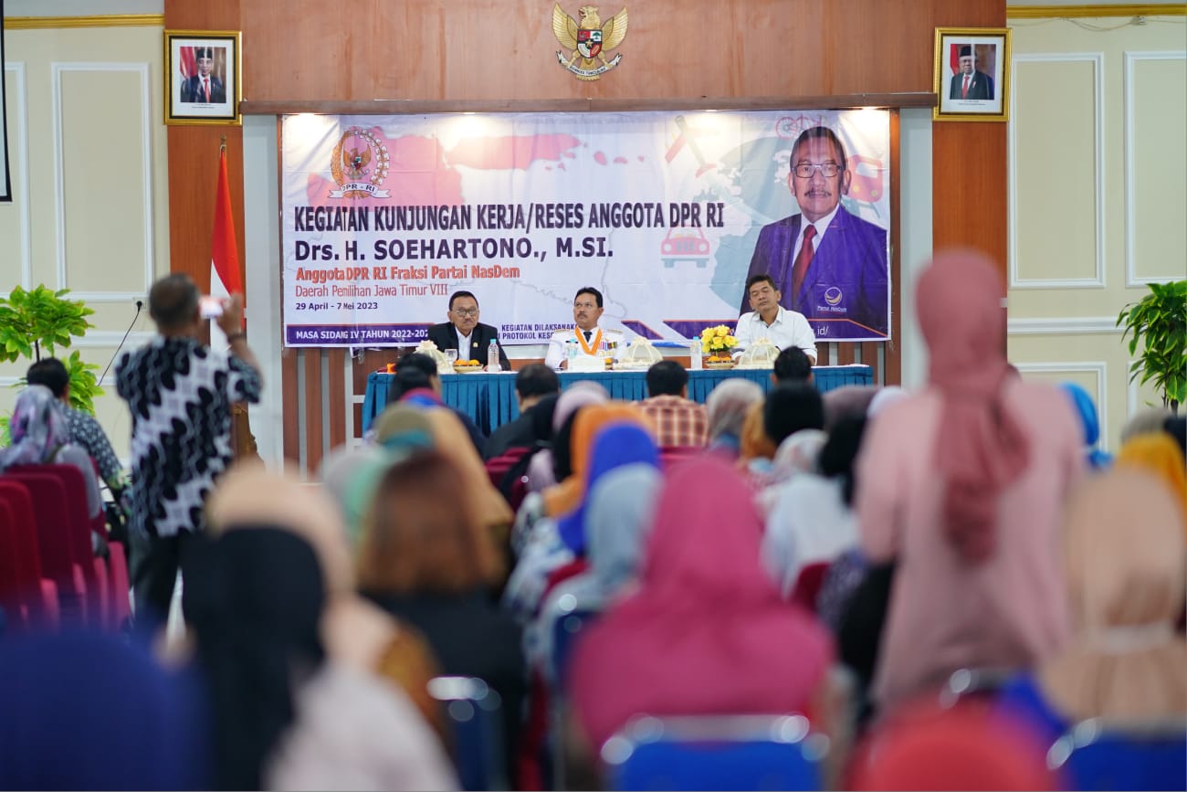 MADIUN – Keberhasilan pembangunan di Kota Madiun juga tak terlepas dari peran pemerintah pusat. Sejumlah pembangunan seperti pengaspalan jalan nasional berangkat dari anggaran pemerintah pusat. Tak hanya, itu Pemerintah Kota Madiun juga mendapatkan pembangunan skala besar seperti Rusunawa dan lainnya. Hal itu tak terlepas dari dukungan anggota DPR RI. Salah satunya, anggota DPR RI Dapil Jatim VIII, Soehartono. Wali Kota Maidi menyampaikan apresiasi kepada politikus Partai Nasdem tersebut saat kunjungan kerja Reses masa Sidang IV di aula Kecamatan Manguharjo, Sabtu (29/4).