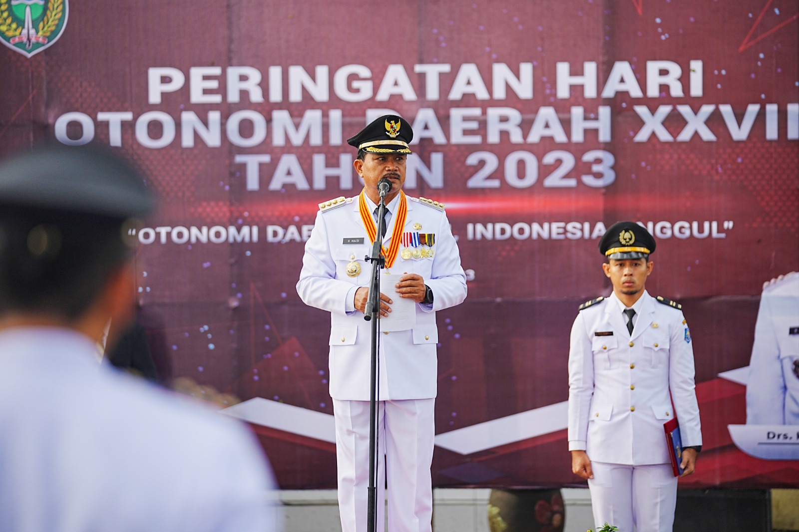 MADIUN - Pemerintah Kota Madiun melaksanakan Upacara Peringatan Hari Otonomi Daerah ke-XXVII tahun 2023 tingkat kota dengan tema "Otonomi Daerah Maju, Indonesia Unggul" di Ngrowo Bening Edupark, Sabtu (29/4).