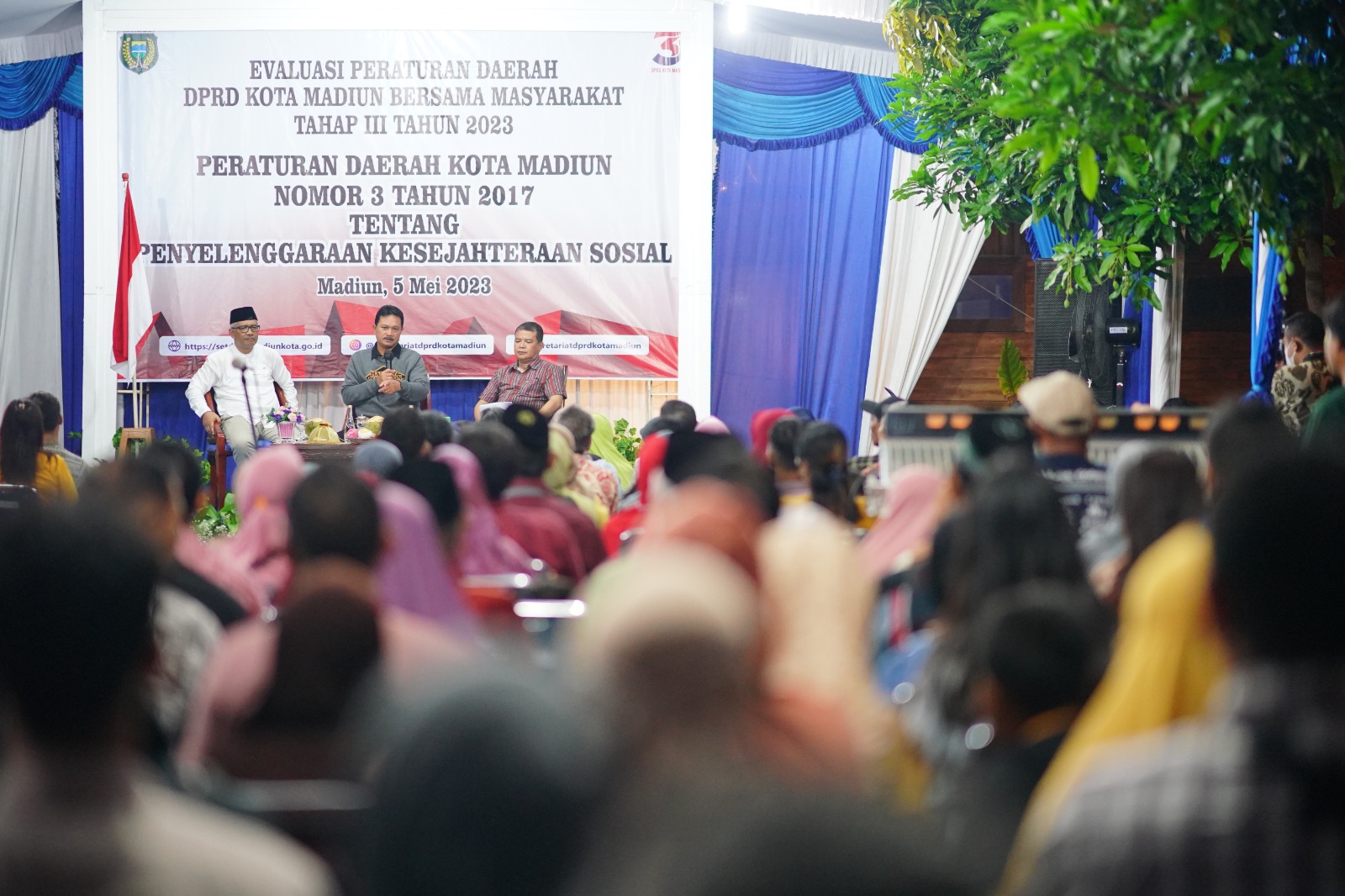 Dalam kegiatan tersebut, mereka membahas Perda Kota Madiun Nomor 3 Tahun 2017 tentang Penyelenggaraan Kesejahteraan Sosial. Wali kota pun mengimbau kepada masyarakat untuk menyampaikan masukan.