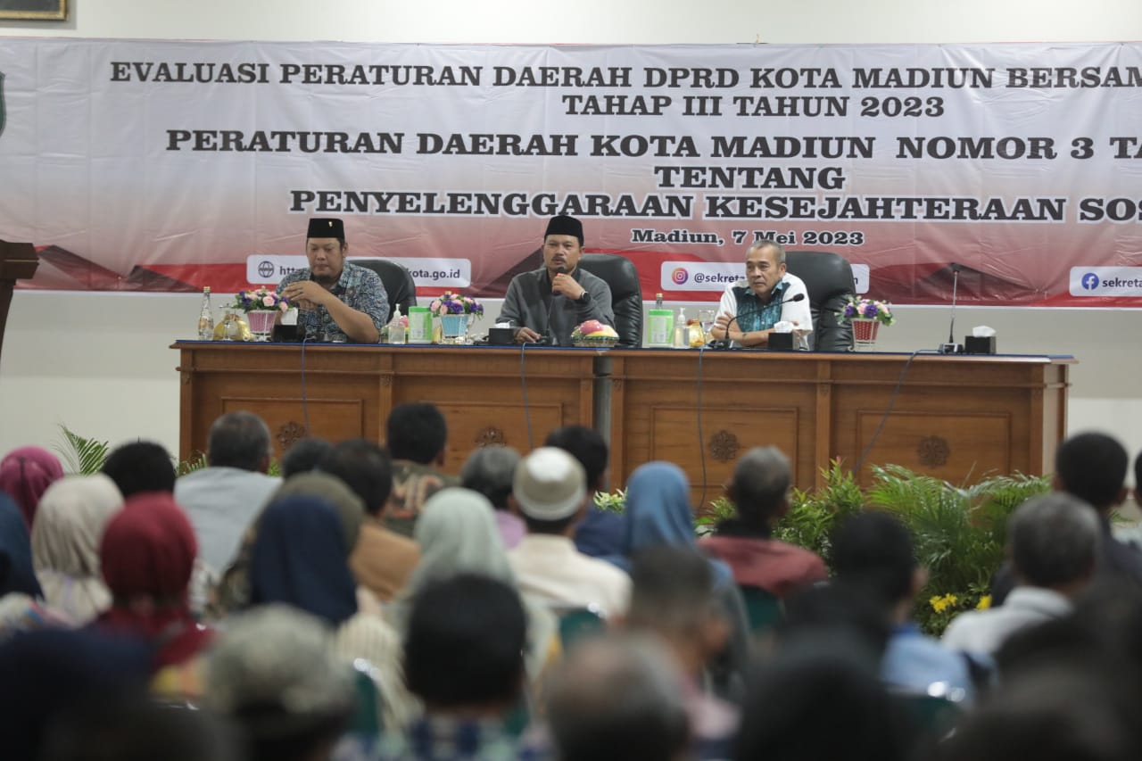 MADIUN – Peraturan Daerah (Perda) wajib menyesuaikan kondisi dan kebutuhan masyarakat. Karenanya, evaluasi pun dilakukan. Salah satunya, terkait Perda nomor 3/2017 terkait kesejahteraan sosial. Evaluasi bersmaa masyarakat itu berlangsung di gedung Diklat Kota Madiun, Minggu (7/5) malam.