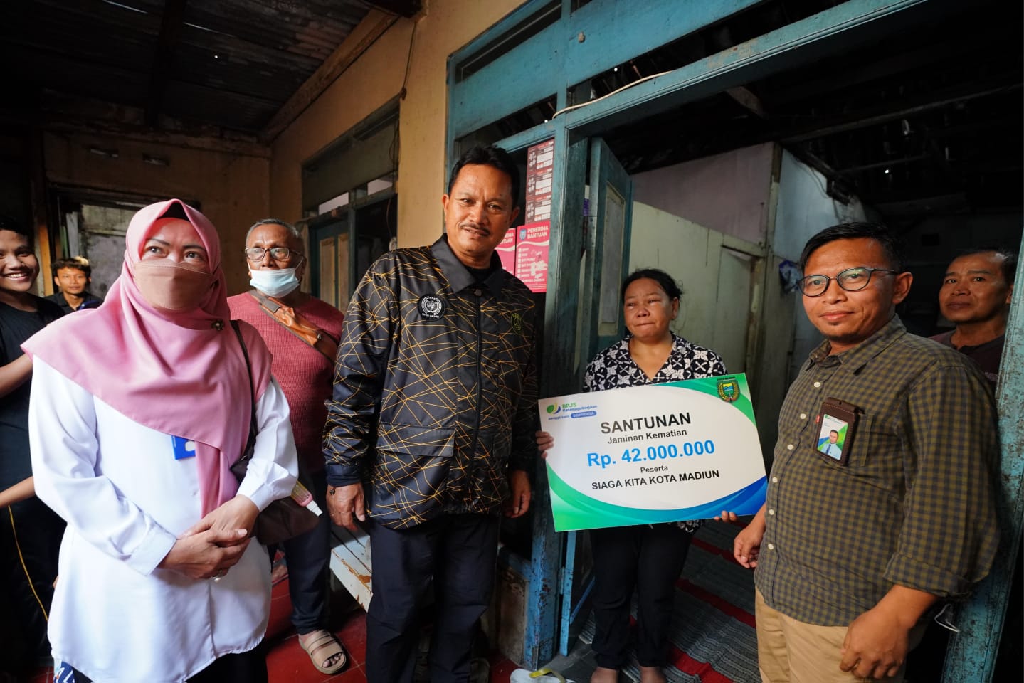 MADIUN – Wali Kota Madiun, Maidi kembali menyerahkan santunan kematian progam Asuransi Bagi Tenaga Kerja Sektor Informal Kota (Siaga Kita). Kali ini, santunan sebesar Rp 42 juta itu diberikan kepada ahli waris dari Andik Sutrisno (42) tahun warga Jalan Merpati Kelurahan Nambangan Lor, Manguharjo. Andik meninggal dunia karena sakit stroke.