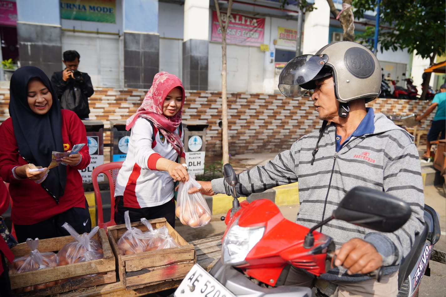 MADIUN - Dinas Perdagangan Kota Madiun menggandeng Perusahaan Perdagangan Indonesia (PPI) untuk menggelar operasi pasar (OP) telur ayam di depan Pasar Besar Madiun (PBM).