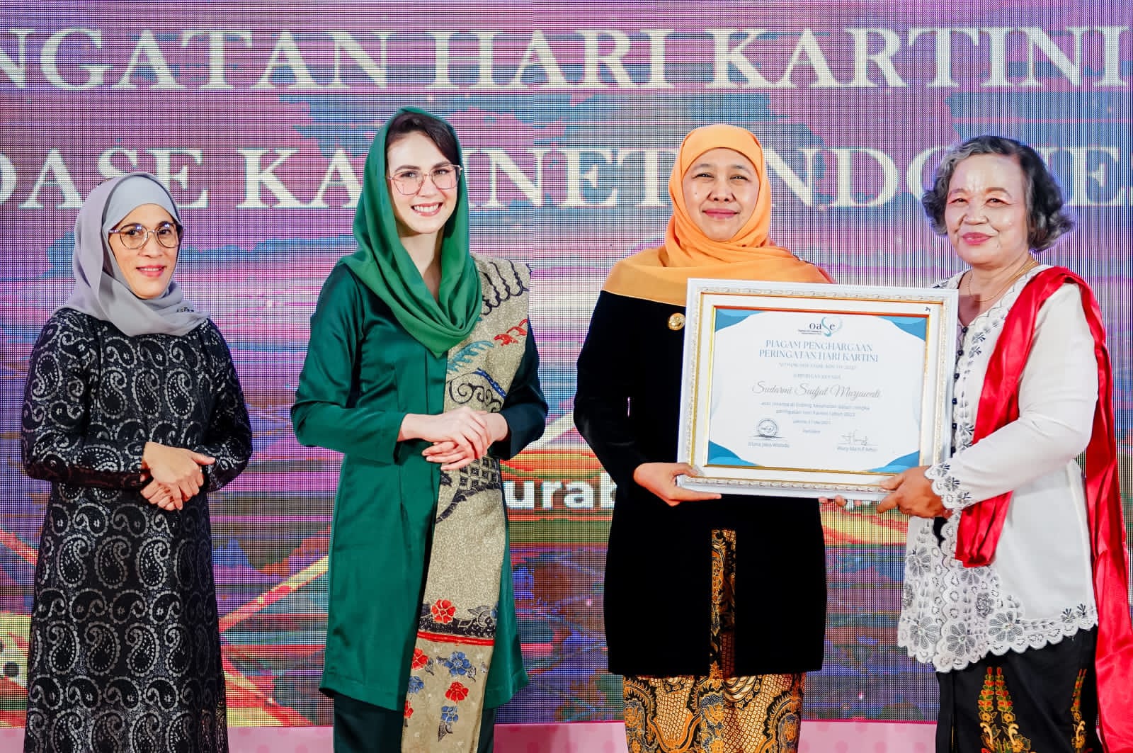 Penghargaan disampaikan kepada Sudarmi oleh Gubernur Jawa Timur Khofifah Indar Parawansa pada Jumat (18/5) di Gedung Negara Grahadi Surabaya.