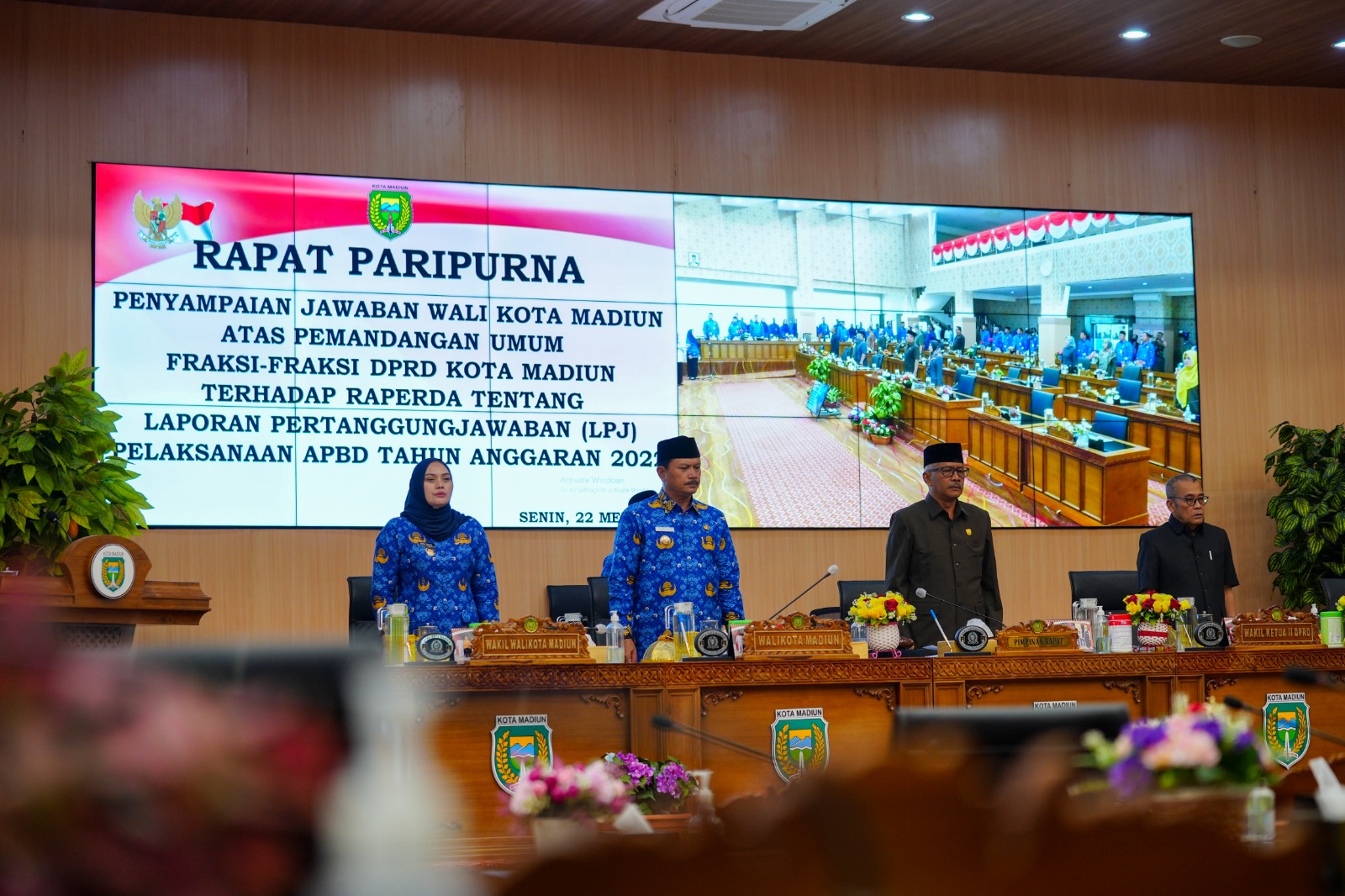 Rapat paripurna dengan agenda penyampaian jawaban wali kota Madiun atas pemandangan umum fraksi-fraksi DPRD Kota Madiun terhadap raperda tentang Laporan Pertanggungjawaban (LPJ) Pelaksanaan APBD Tahun Anggaran 2022 itu berlangsung di gedung DPRD Kota Madiun.