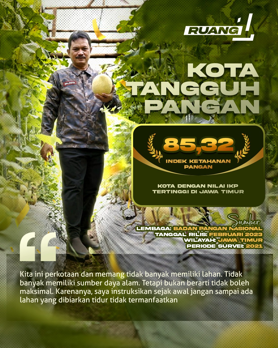 Kalau ada desa atau kelurahan tangguh bencana (Destana), kita juga punya Kota Tangguh Pangan. Ya, kota kita biarpun tidak banyak memiliki lahan, tetapi terbukti memiliki ketahanan pangan yang baik. Survei yang dilakukan juga bukan oleh lembaga sembarangan. Survei ini dilakukan Badan Pangan Nasional (Bapanas) untuk periode 2021. Survei dilakukan pada 2022 dan hasilnya baru dirilis tahun ini. Survei yang dilakukan Bapanas memang menyeluruh. Di antaranya tingkat konsumsi daging, ikan, sayur dan biji-bijian dan lain sebagainya. Dari sejumlah item itu kemudian mengemuka indek ketahanan pangan tersebut. Kota Madiun memiliki indeks ketahanan pangan mencapai skor 85,32. Nilai itu yang tertinggi di antara sembilan kota di Jawa Timur yang diriset Bapanas.