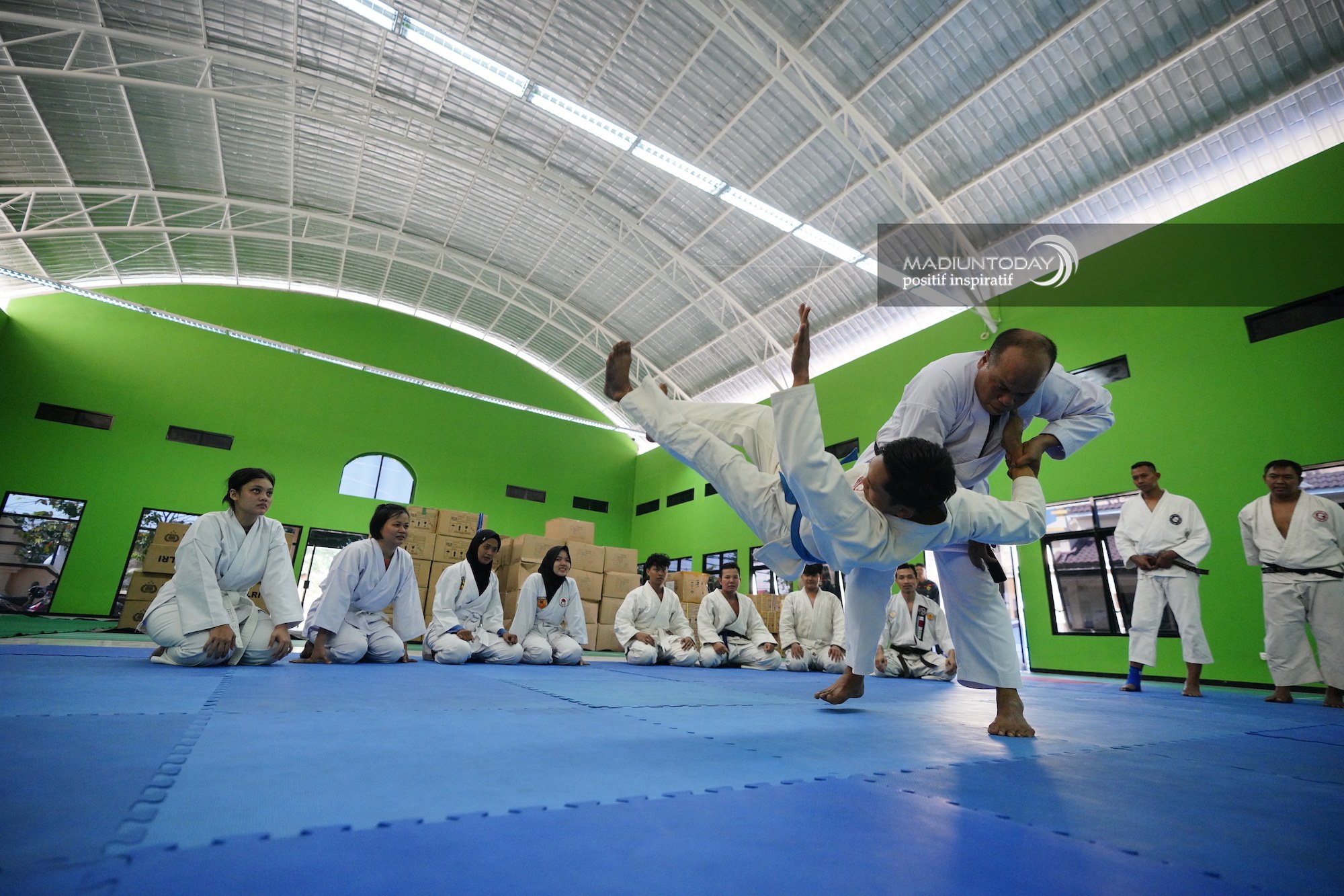Personel Polres Madiun Kota melaksanakan latihan bersama di gedung Bharamakota, Senin (05/06/2023). Latihan ini untuk menyongsong pertandingan Kejurda Kapolda Jatim Cup 2023. Event ini mempertandingkan Rangkaian 1,2,3 Beladiri Polri.