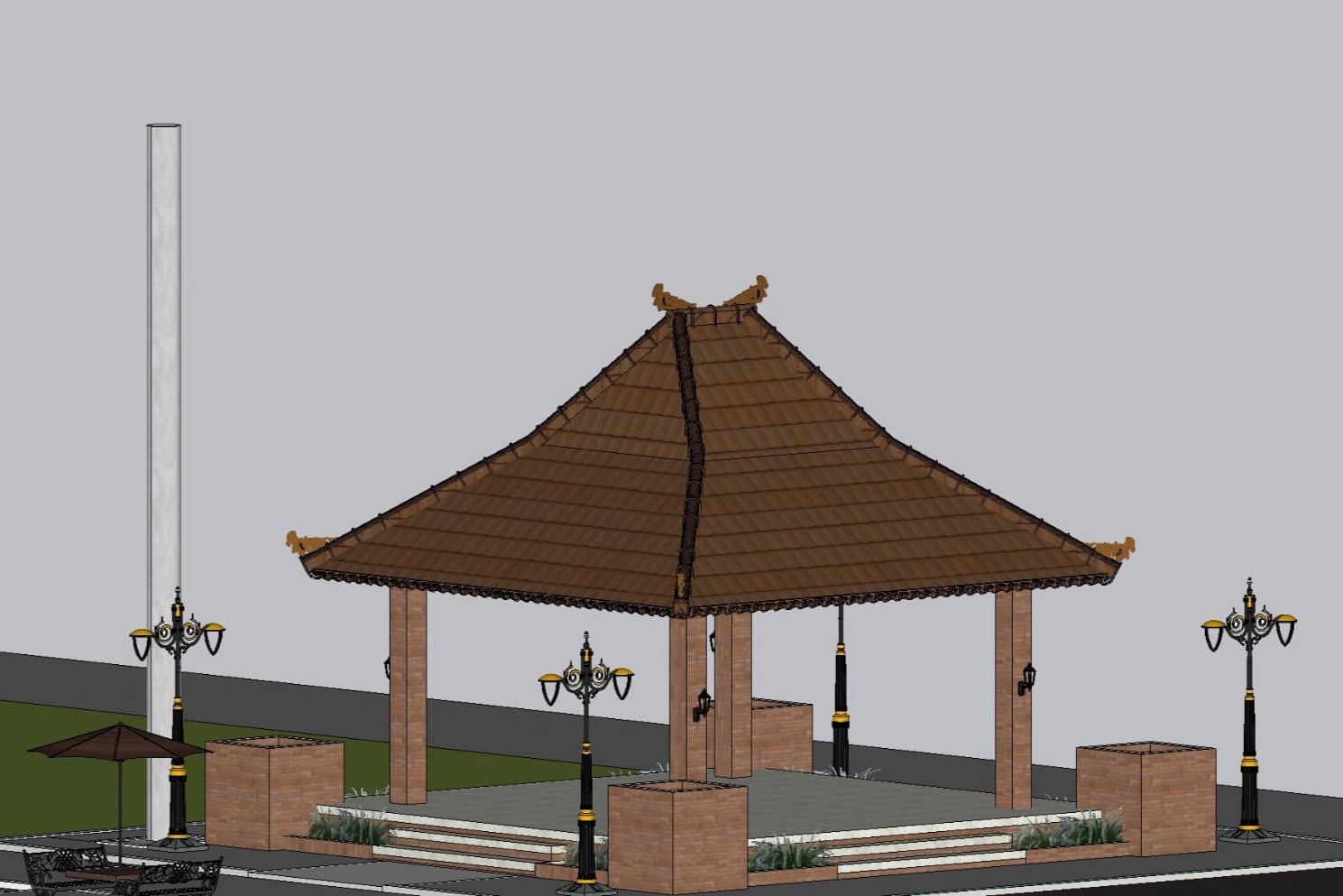 RTH Gegono Manis, lanjutnya, memang cukup simpel. Yakni, sebuah pendapa dengan luasan 14x14 meter. Selain itu ada tambahan kursi taman beserta payungnya. Andi menyebut pekerjaan saat ini sudah mulai pekerjaan akhir. Pembangunan diperkirakan selesai akhir bulan ini.